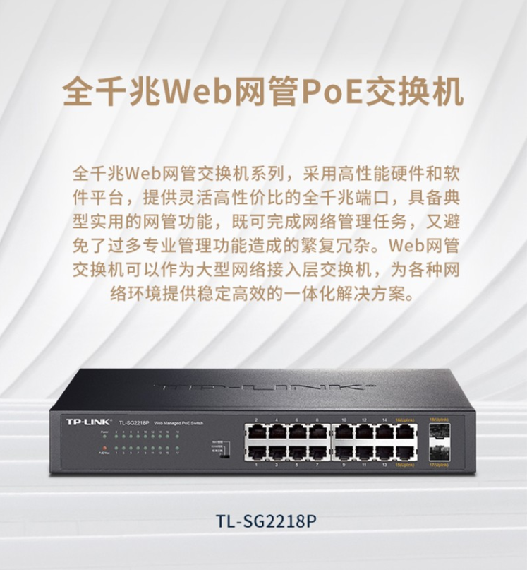 以太網(wǎng)交換機普聯(lián)/TP-LINK網(wǎng)管型云管理POE供電交換機 16口千兆 企業(yè)級TL-SG2218P/臺