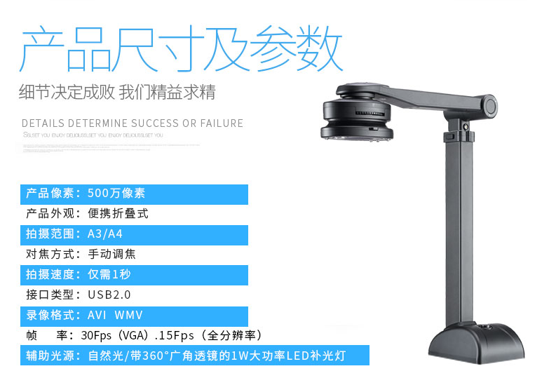 像素(高拍儀)  :   1000W